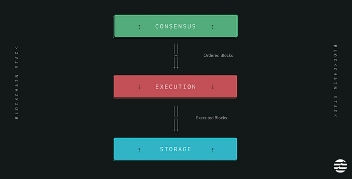 일반적인 블록체인 스택은 합의, 실행 및 저장의 세 가지 주요 구성 요소로 구성됩니다.
