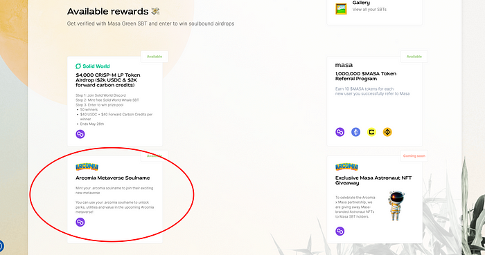 5단계: 그게 다야! Arcomia는 Masa SBT를 위해 지갑을 검사합니다. 소중한 Masa SBT 소유자는 자신만의 Masa Astronaut 아바타를 무료로 요청할 수 있는 특권을 갖게 됩니다.