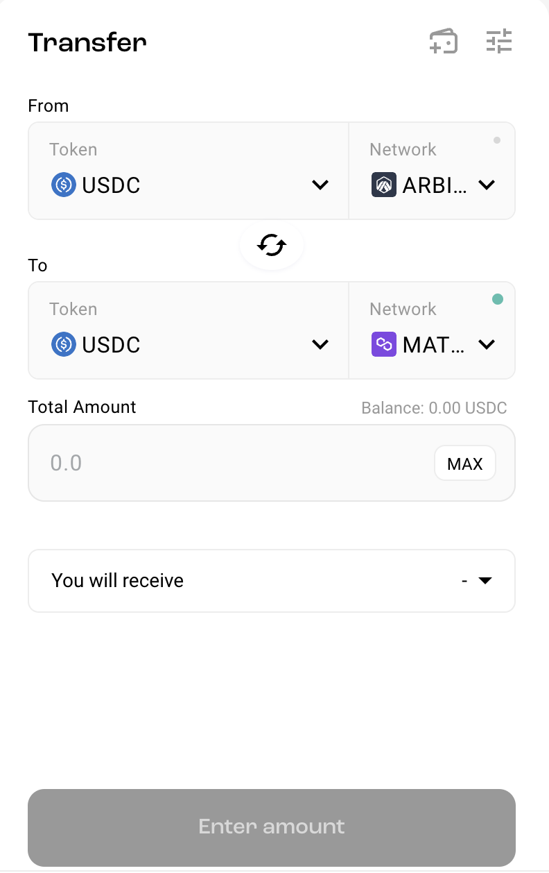 저는 From에 폴리곤, To에 아비트럼을 선택하고 USDC를 보내겠습니다.