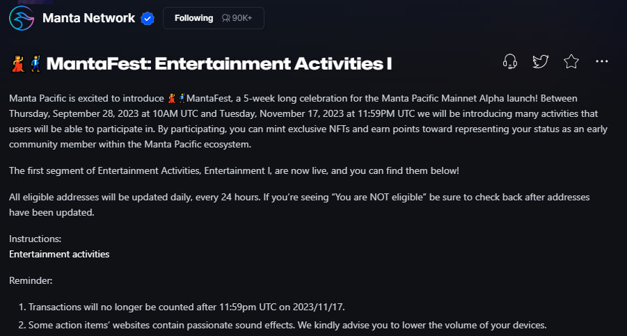 [MantaFest: Entertainment Activities I 참여하기, ~2023/11/17]