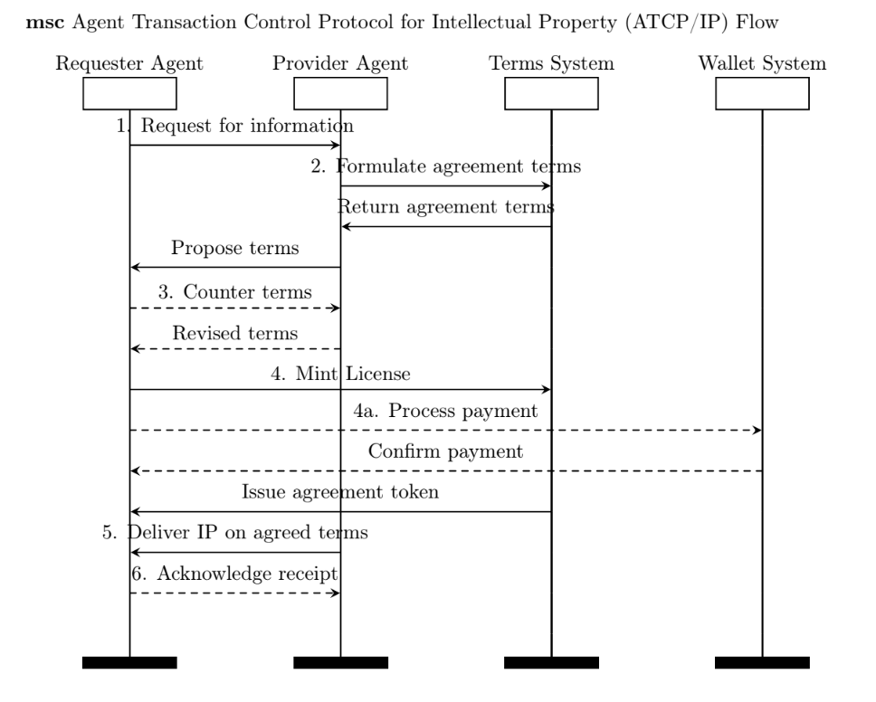 Agent Transaction Control Protocol for Intellectual Property(Agent TCP/IP)는 신뢰가 필요 없는 지적 재산 거래를 위해 설계된 프로토콜입니다. 이 시스템을 통해 에이전트는 인간의 개입 없이도 데이터, 알고리즘, 콘텐츠와 같은 IP를 자유롭게 거래하고, 경제 활동을 수행할 수 있습니다.