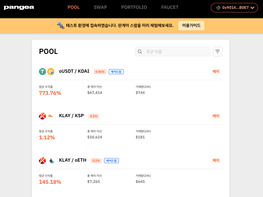 - 디앱 미리보기 https://app.dev.pangeaswap.com/pool
