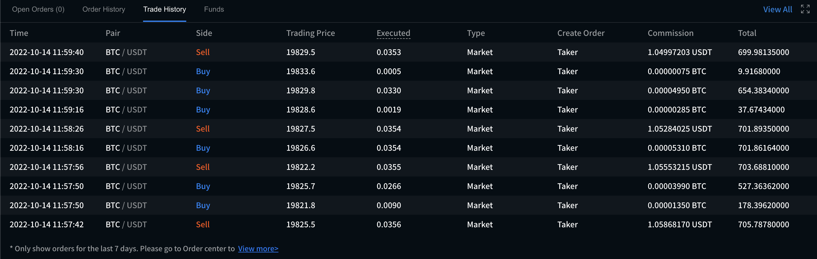700 USDT 기준으로 샀다/팔았다를 8번 반복하시면 총 5600 USDT로 5000 USDT 이상의 거래량을 채울 수 있습니다.