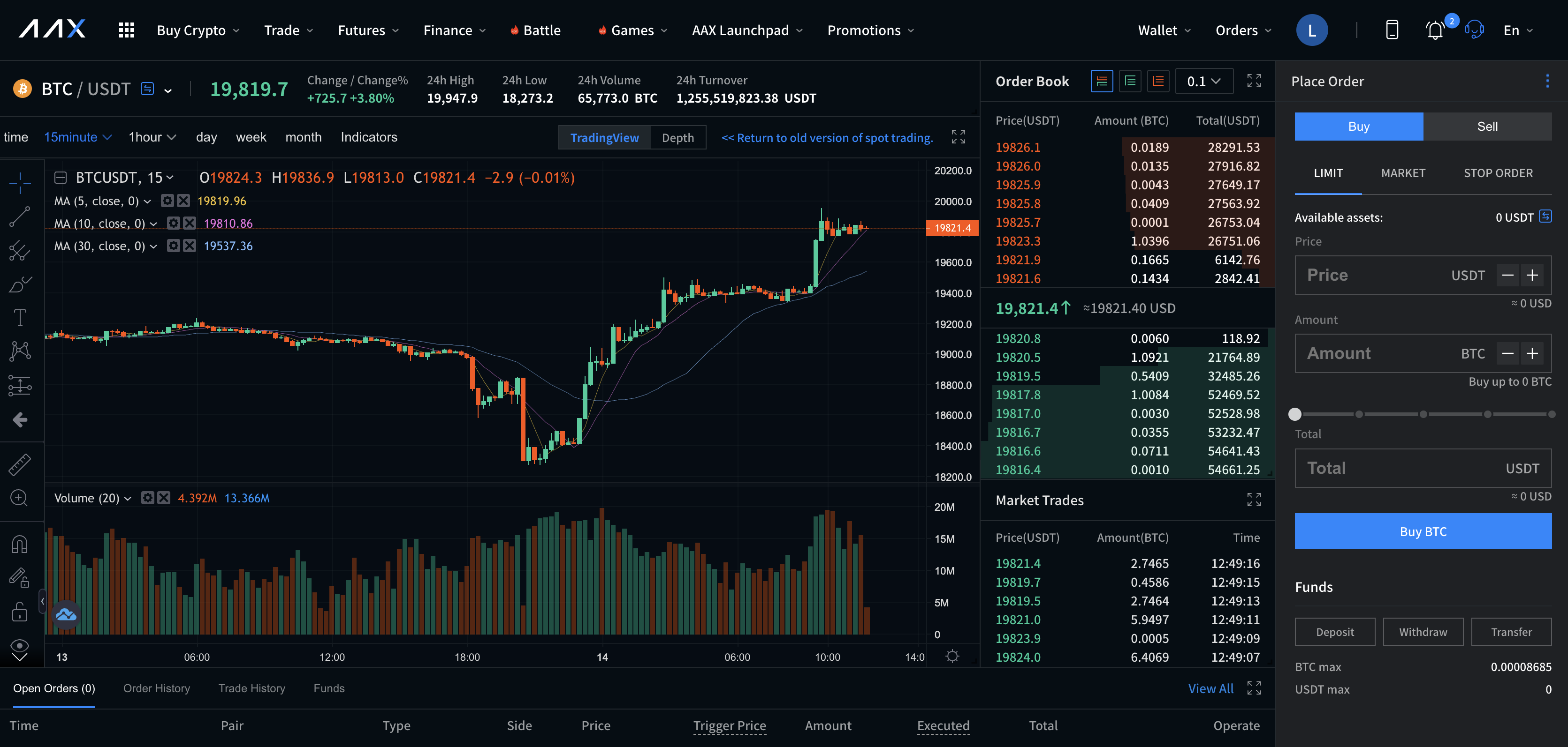 AAX 거래소에 가입하고 USDT 입금 주소를 발급합니다 (TRC20)