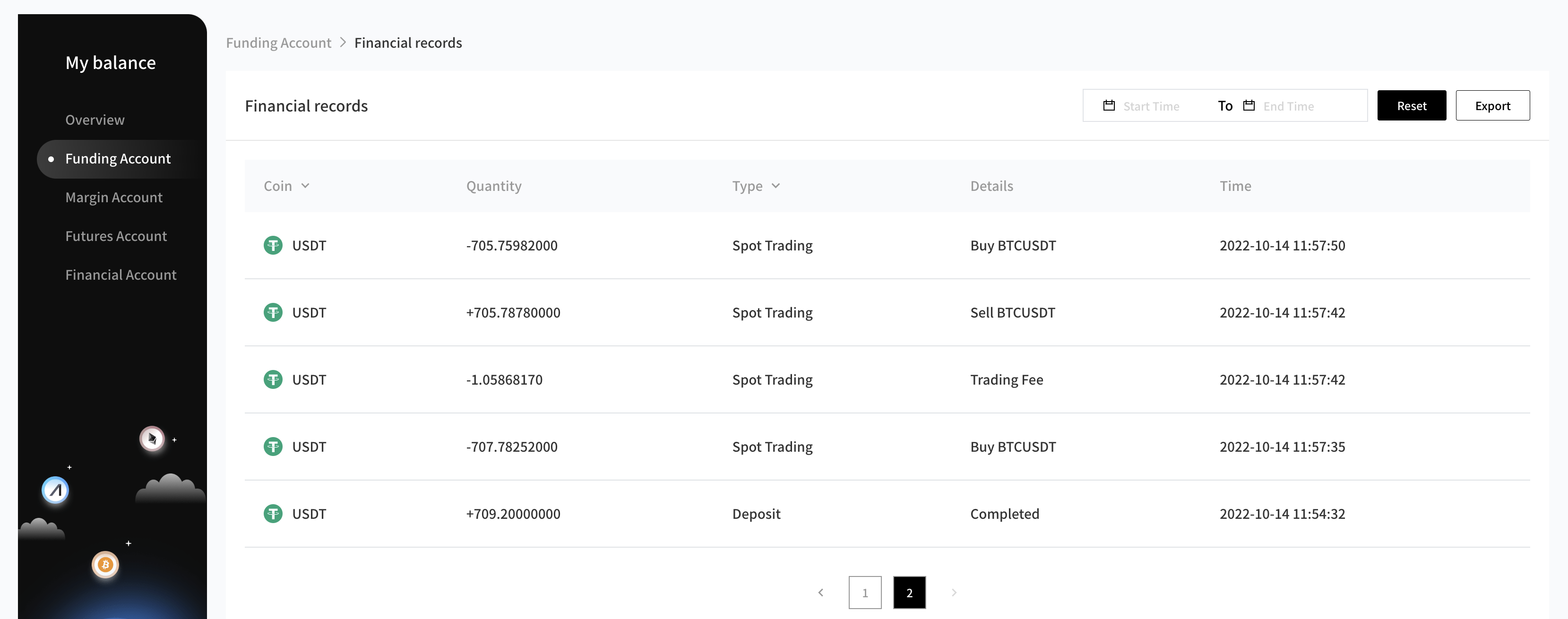 AAX에서 입금 내역을 확인합니다. (My balance > Funding Account)